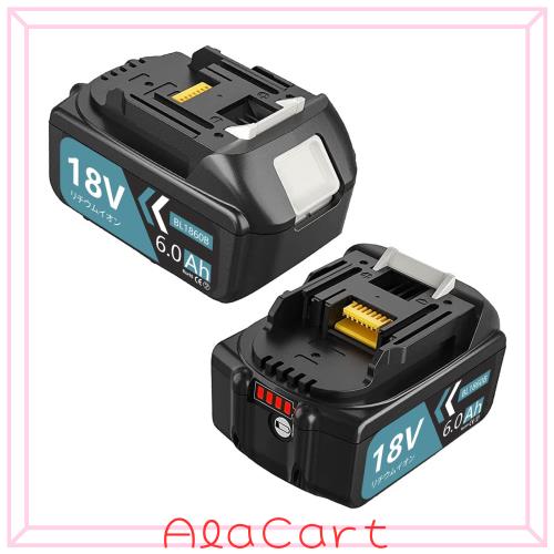 【bl1860b互換バッテリー】互換 マキタ互換バッテリー18v bl1860b 18v 2個セット 電圧:18V 容量:6000mAh 種類: 高品質採用 多機能付き:バッテリーは残量表示が付いています。ダブル新機能付き:残量表示?自己故障診断。
