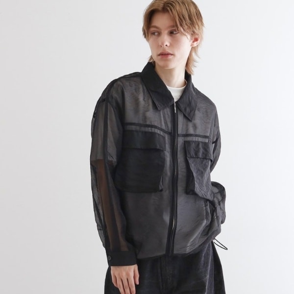 ダブルポケットクロップド丈シャツアウターをシアー素材で仕上げました。