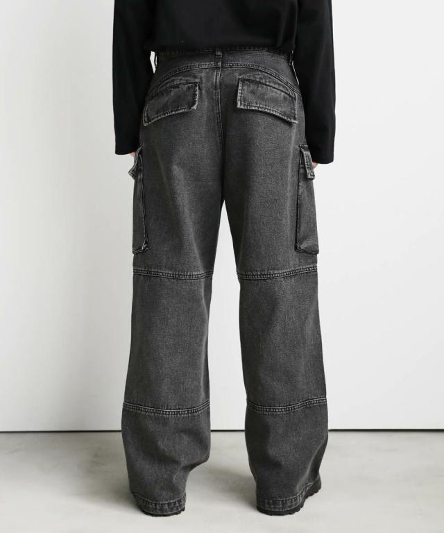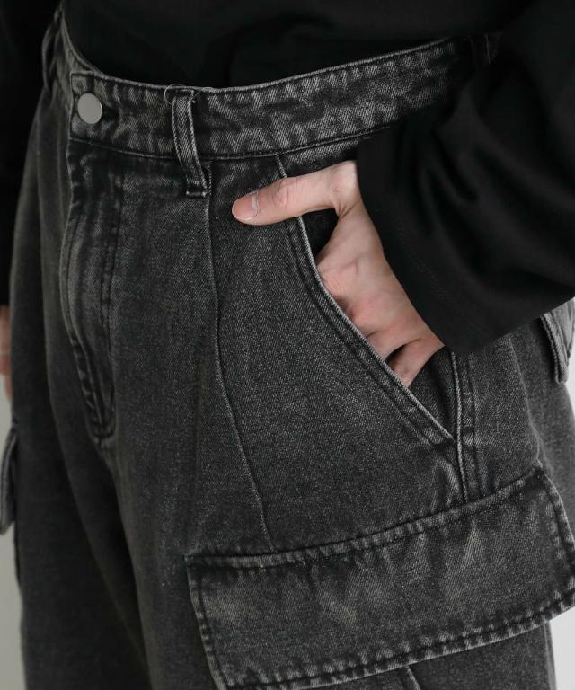 【セットアップ可能】ウォッシュ加工カーゴデニムパンツ