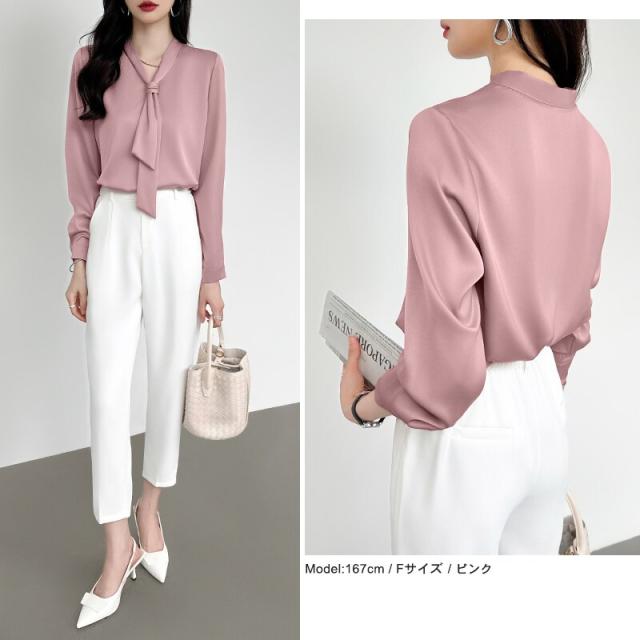 ボウタイブラウス フォーマルブラウス 大人きれいめ ブラウス ボウタイ レディース 長袖 トップス