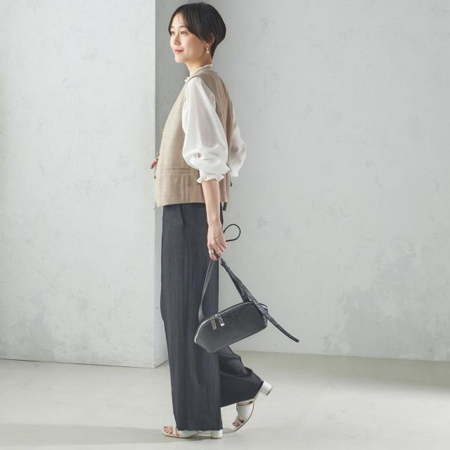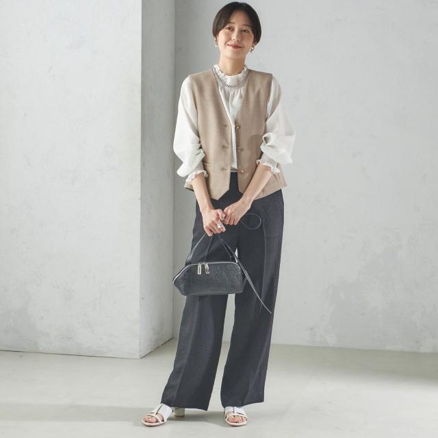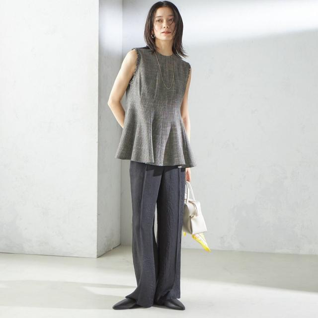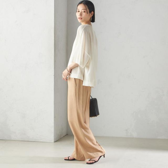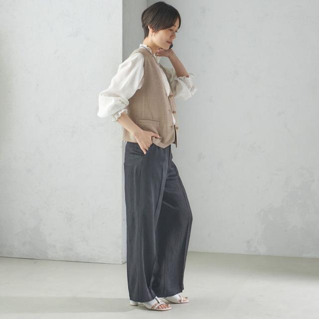 とろみのブラウス合わせでしたら同素材のトップスとセットアップで着用もおすすめです。