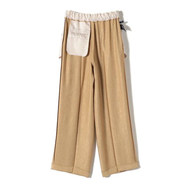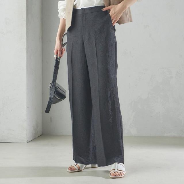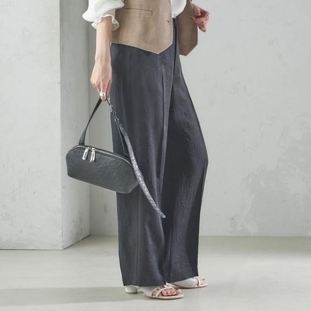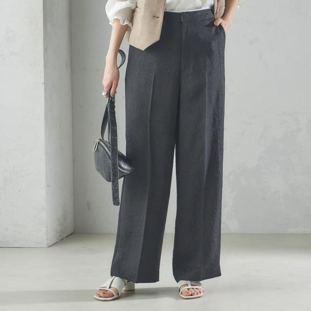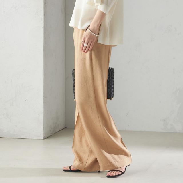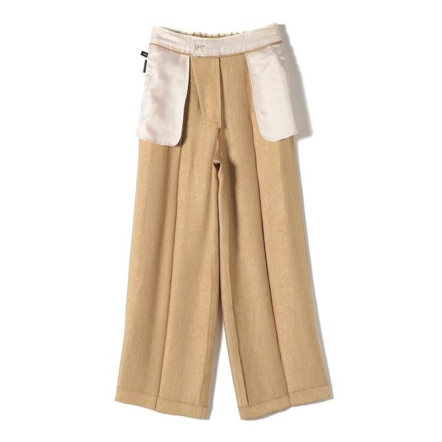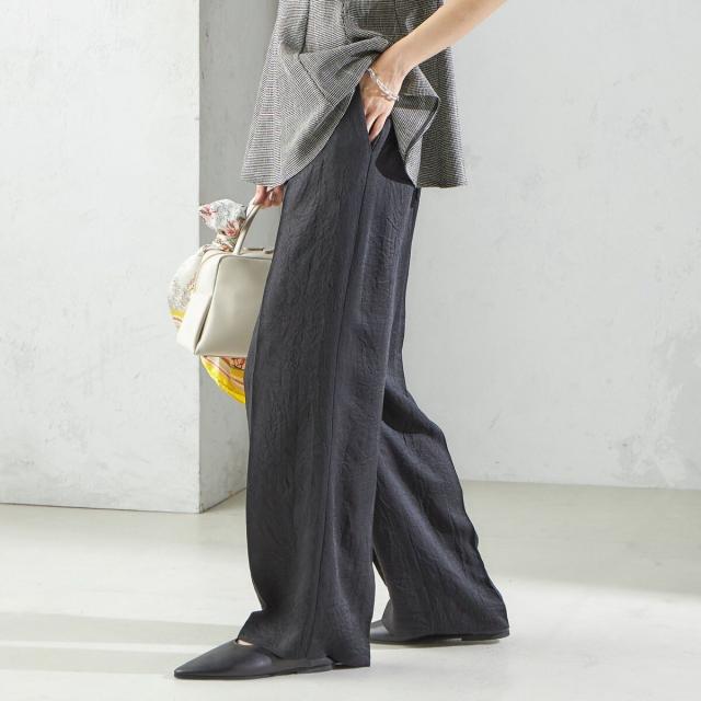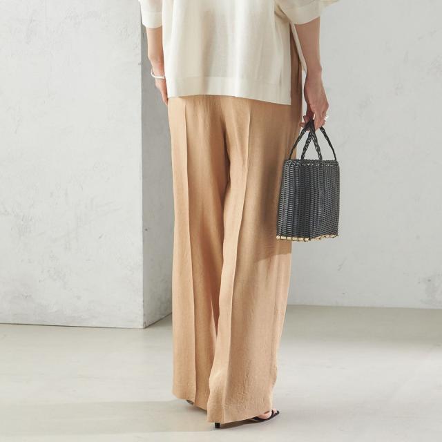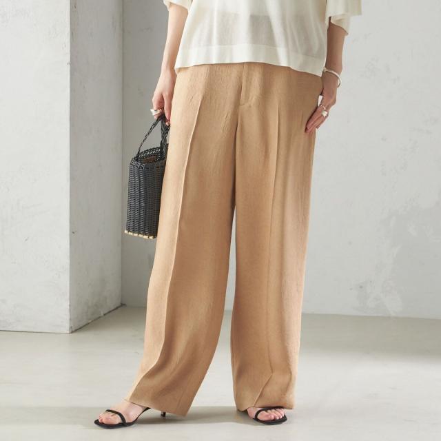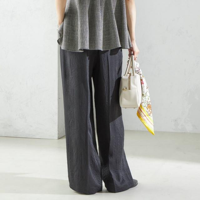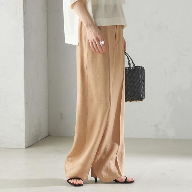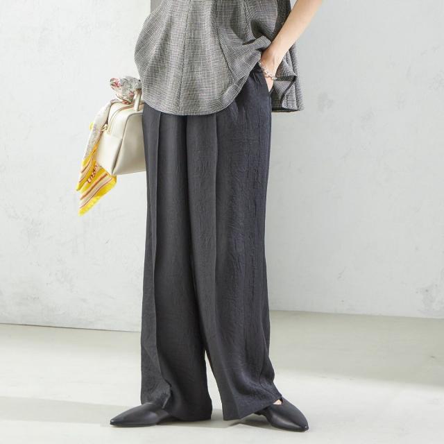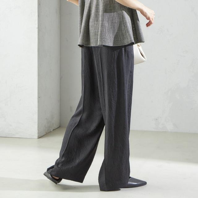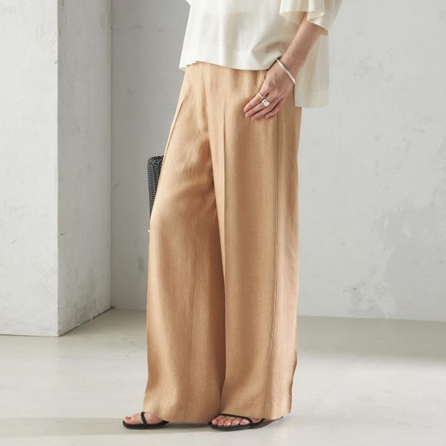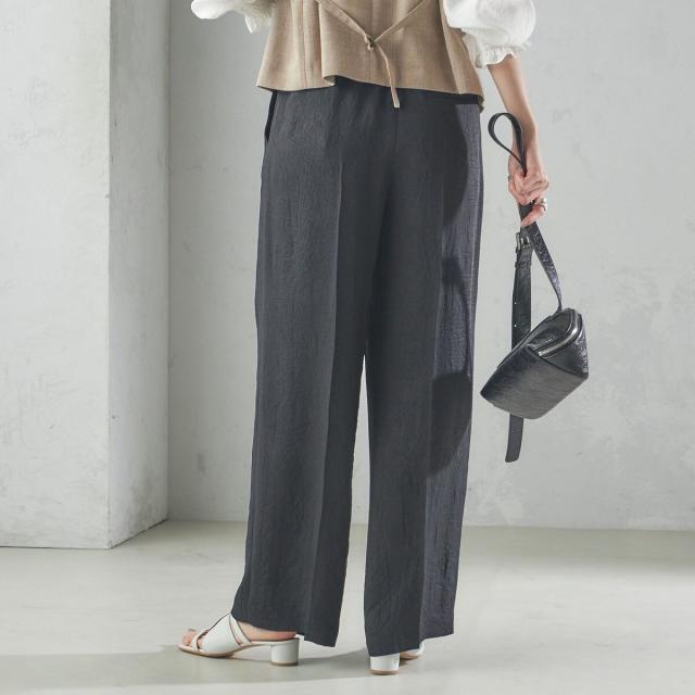 〈接触冷感/吸水速乾〉アセテート ワッシャー ウエスト デザイン パンツ