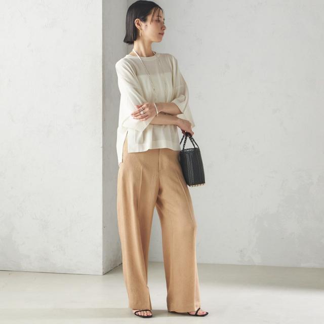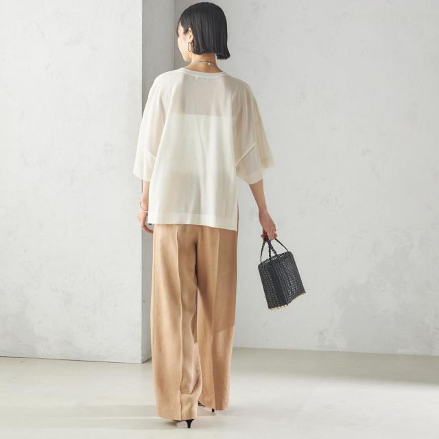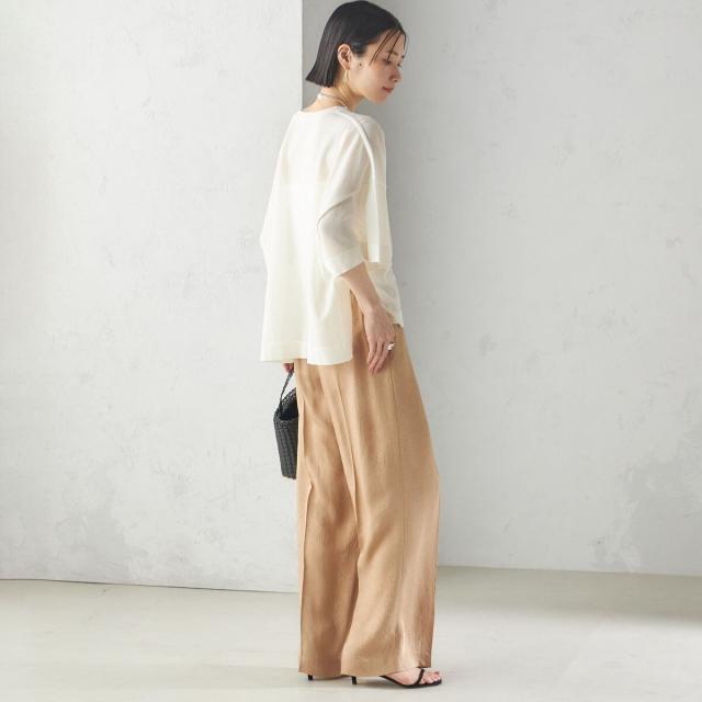 生地厚で身体のラインを拾いにくく、素材の落ち感が綺麗に着用して頂けるワイドシルエットです。