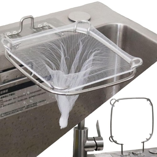 ママ倉 三角コーナー不要 シンク 水切り ゴミ袋用 ステンレス鋼 折りたたみ 立てる水切り袋 いらず 水切りネットホルダー 使い捨て 水切り袋ホルダー キッチン 水切りラック 台所 生ゴミ受け入れ スタンド さんかくこーなー 浮かせる 手持分解洗う 5年間用 大きな開口 15.8*19CM