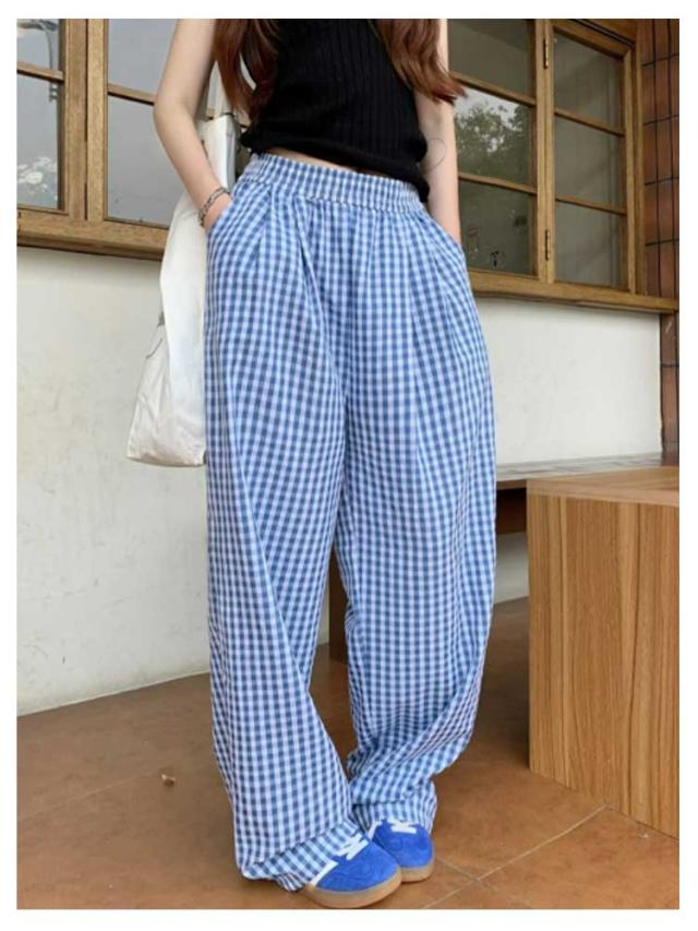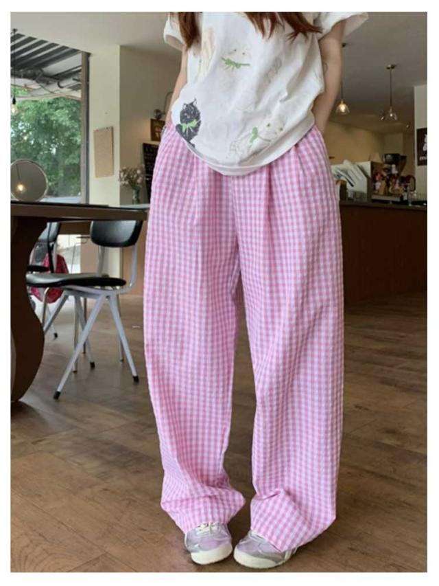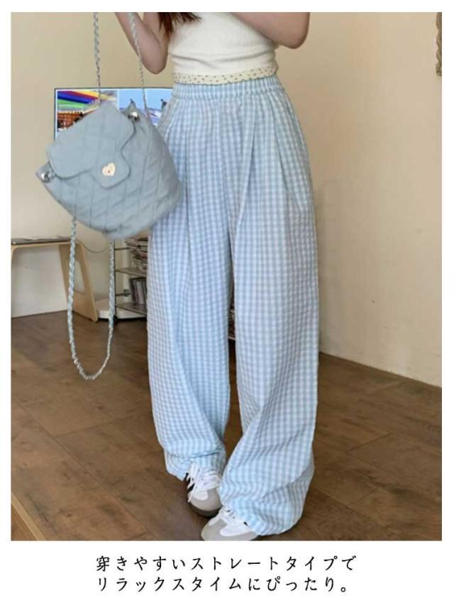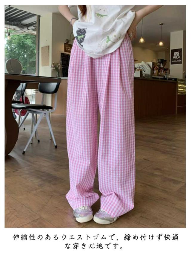 パンツ ルームウェアパンツ ルームウェアパンツ ギンガムチェック柄 かわいい 春夏 ワイドパンツ リラックスパンツ ズボン 薄手 レディース 涼しい ゆったり 部屋着 パジャマ
