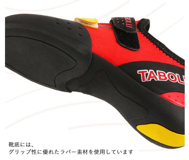 | 蒸れにくい素材使用!岩場やジムなど、屋内でも屋外でも使いやすいシューズです。 足入れがしやすく、マジックテープで調整もしやすいのが特徴です。 靴底には、グリップ性に優れたラバー素材を使用しています。 | |