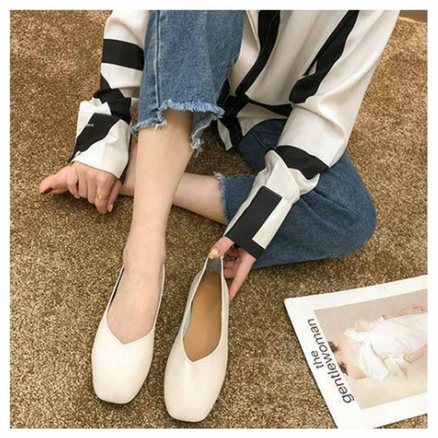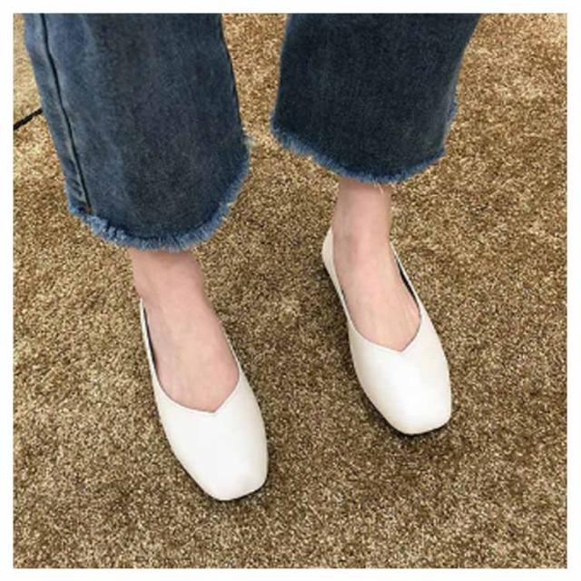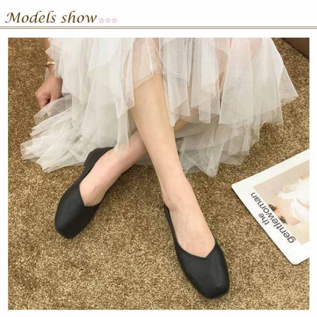 | さっと履けておしゃれに決まる!Vカットスクエアトゥフラットシューズ。 シンプルながらも脚をきれいに見せてくれるディテールが詰まったスクエアトゥシューズ。 フラットシューズとしてもかかとを踏んでバブーシュとしても楽しめる2way仕様。 ソール全体にふかふかのクッションが入っていて足になじむソフトな履き心地。 フラットなのでたくさん歩けます! | |
