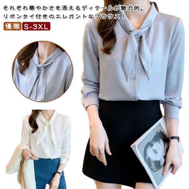 ボウタイブラウス シャツ ブラウス レディース ボウタイ リボン 長袖 トップス フォーマル 卒業式 入学式 セレモニー オケージョン リボンブラウス エレガント 優雅 薄手 通勤 OL 結婚式 二次会 お呼ばれ ブルー ホワイト