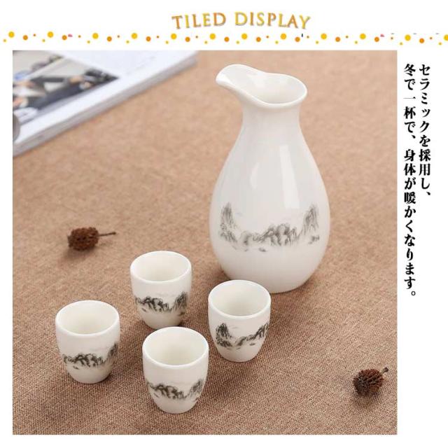 | 【おしゃれな柄】 徳利1個+お猪口*4個のおちょこセットです。 セラミックを採用し、冬で一杯で、身体が暖かくなります。 適量のお酒が楽しめるので、ちびちびと一人で呑むのに最適なサイズ。 | |
