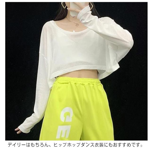 へそ出し シースルー 春夏 シアートップス ヒップホップ 韓国風 長袖 ショート丈 tシャツ トップス 韓国 ミニ丈 レディース 蒸れない カットソー メッシュ ダンス衣装 トップス ショート丈 透け感 Tシャツ カジュアル M L XL 2XL