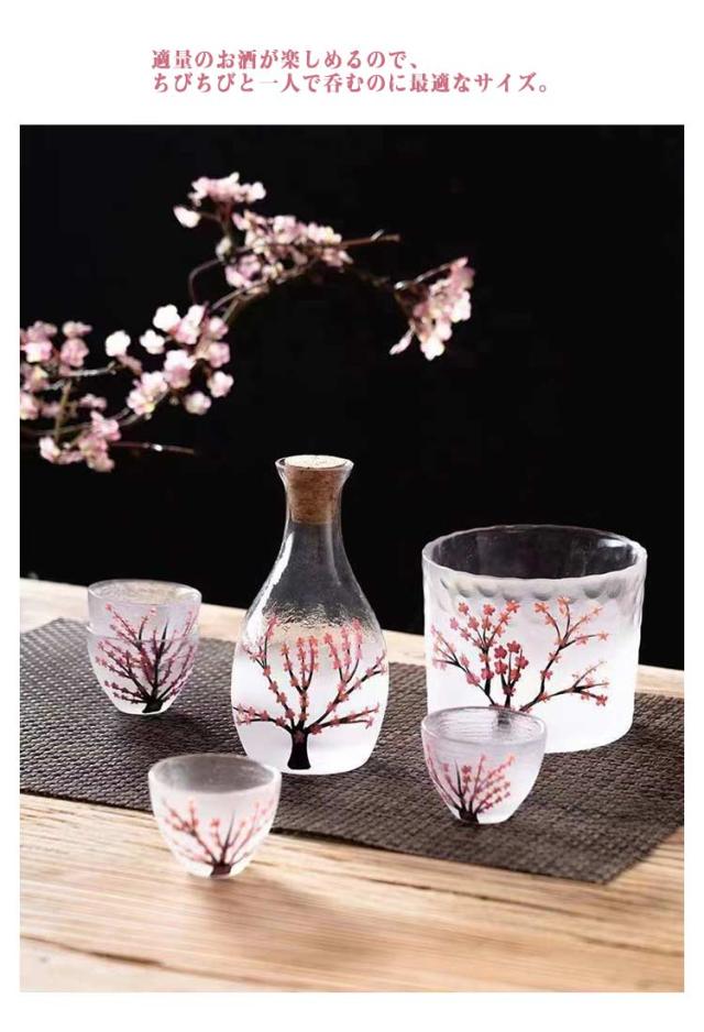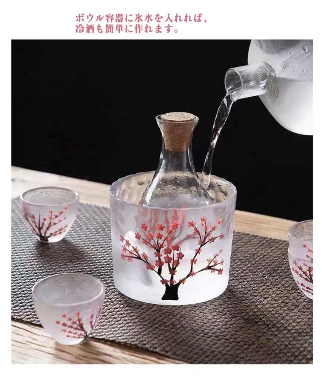 徳利 セット かわいい 日本酒 おちょこセット ガラス 4点セット 冷酒器 酒器セット おちょこ 冷酒グラス ぐい?み ガラス 熱燗 冷酒 桜 保温 敬老の日 母の日 父の日 贈り物