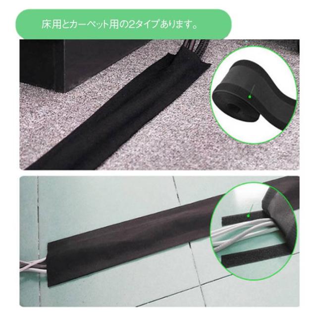 マジックテープ 配線 床用 配線隠し ケーブル フローリング用 3m 3m カバー カバー 隠し コード 配線カバー ケーブルカバー 繰り返し 裁断可 黒