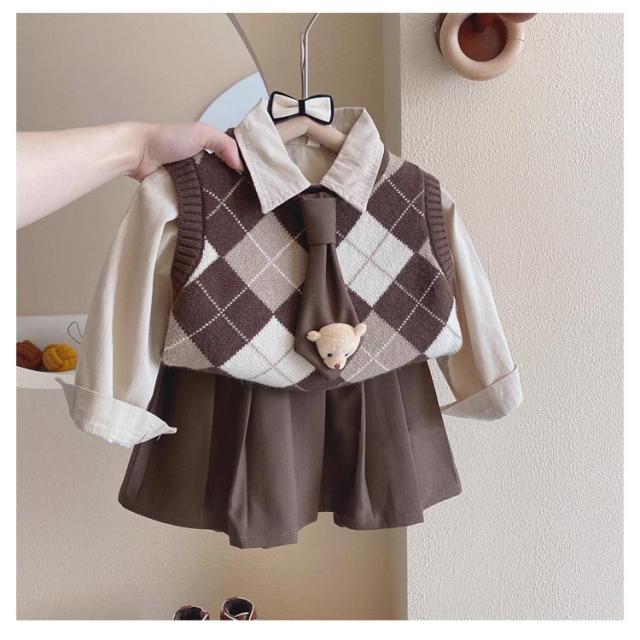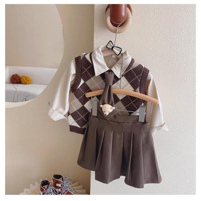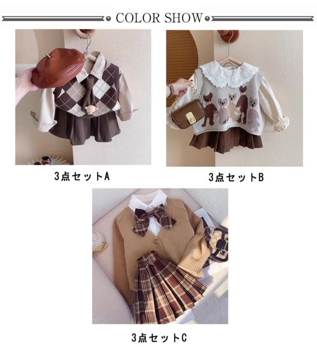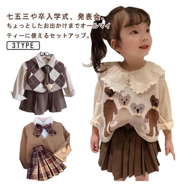 入学式 フォーマル 入園式 卒園式 キッズ スーツ セットアップ ニットセーター 卒業式 女の子 演出 3点セット 子供服 小学生 ミニスカート 幼稚園 長袖シャツ スカート おしゃれ ゆったり スーツ 女の子 中学生 入学式 発表会 80 90 100 110 120 130