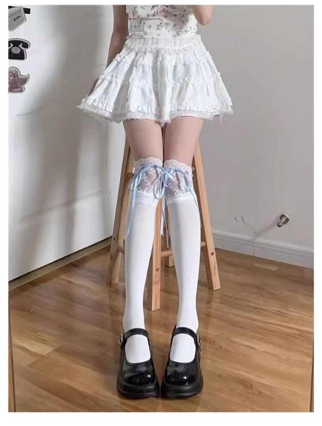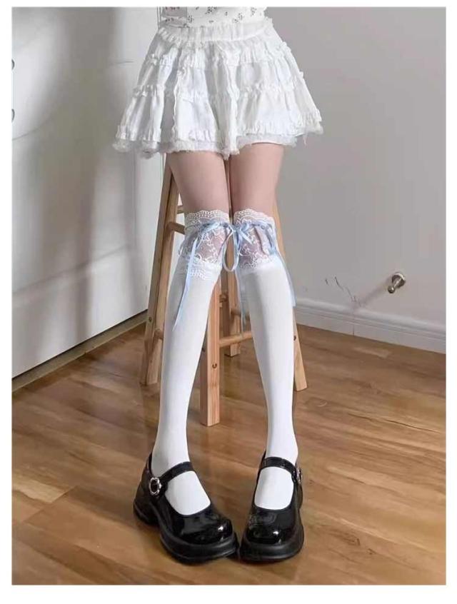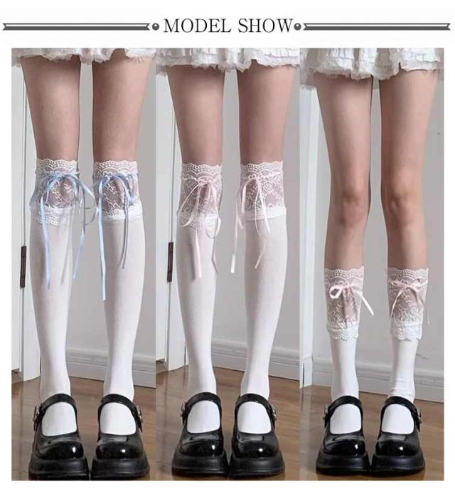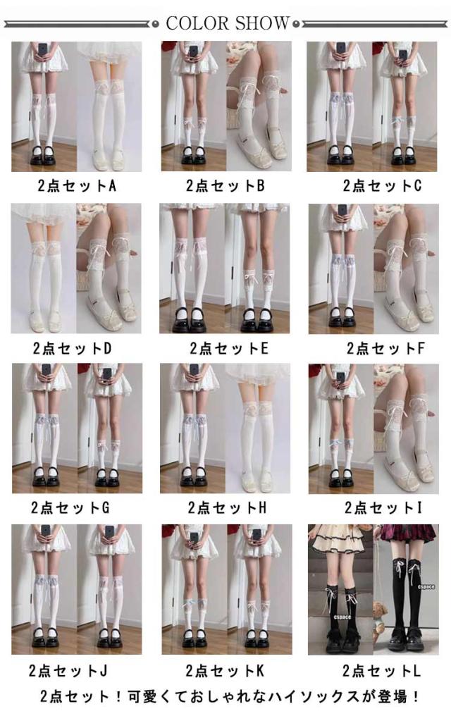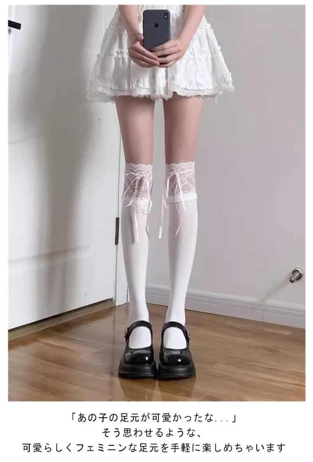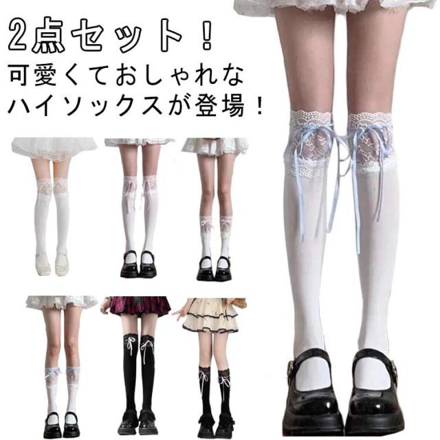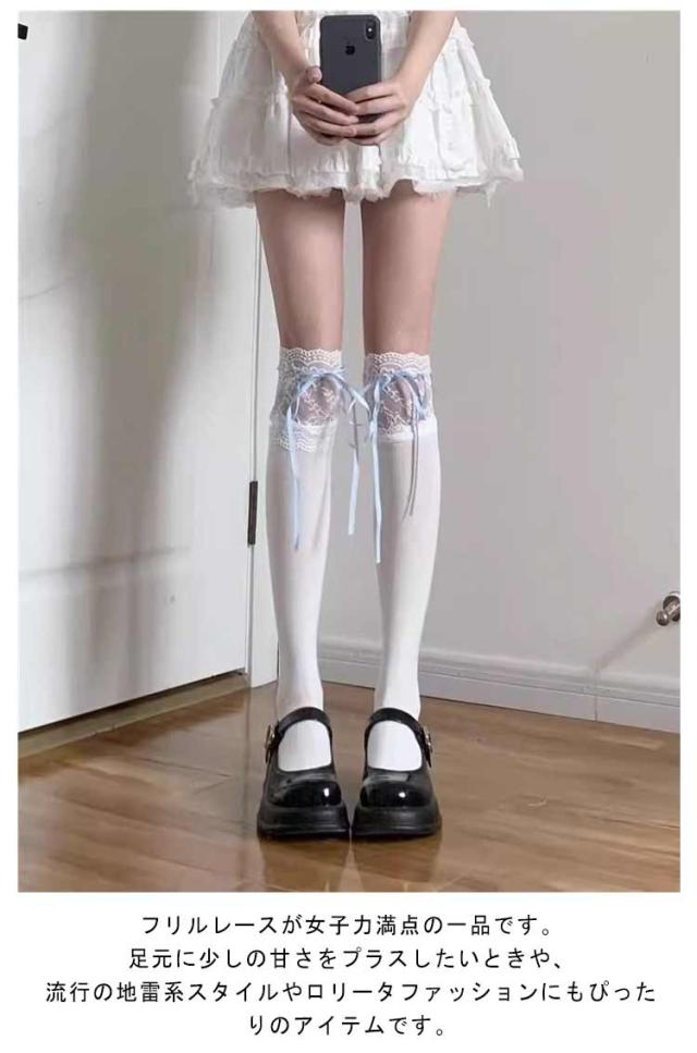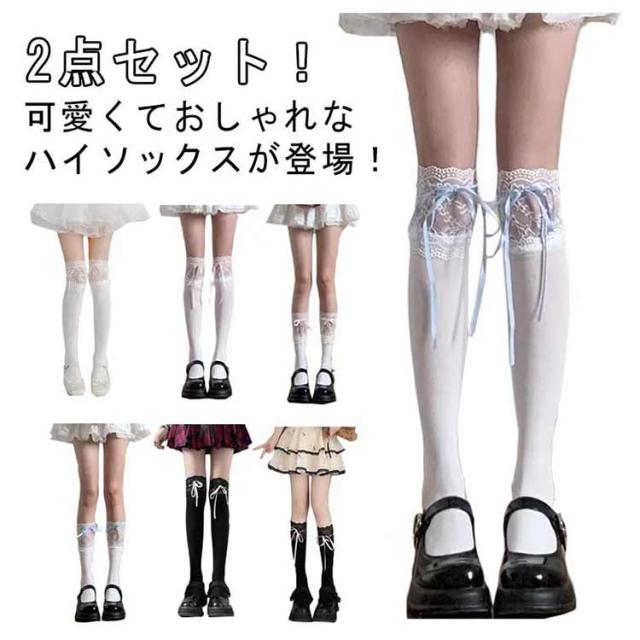 地雷系 2点セット ゆめかわいい ニーハイソックス ホワイト フリルレース 2点セット ゴスロリ 量産型 白 リボン付きレースハイソックス 姫系 ブラック 卒業式 ロリータ 厚底 厚底シューズ 卒園式 レディース靴下 入園式 入学式 発表会 新生活 新学期