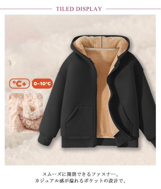 | 110-160cm!ふんわりとした素材を用いて、優れた着心地を追求するスウェットパーカー スムーズに開閉できるファスナー、カジュアル感が溢れるポケットの設計で、 デイリー使いに適した実用性があるフード付き 春秋冬に裏起毛に仕上げて、暖かく着られる 無地なデザインでカジュアルなど様々なシーンで活躍します。 適度な厚みがあって、しっかりと立つと同時に防風効果もあります。 | |