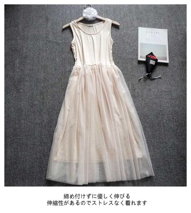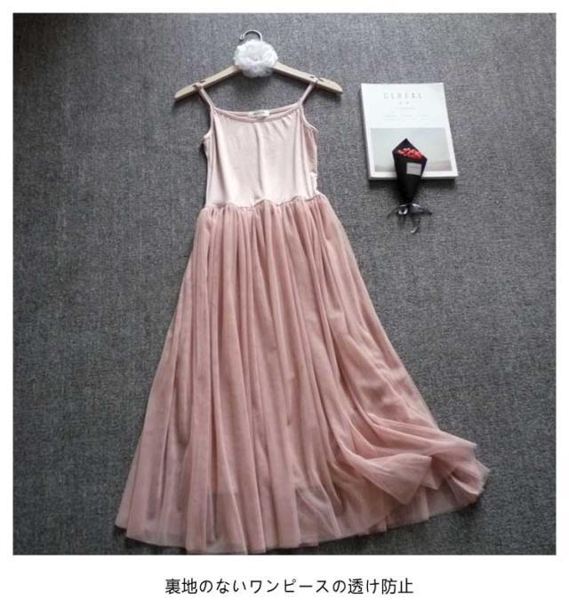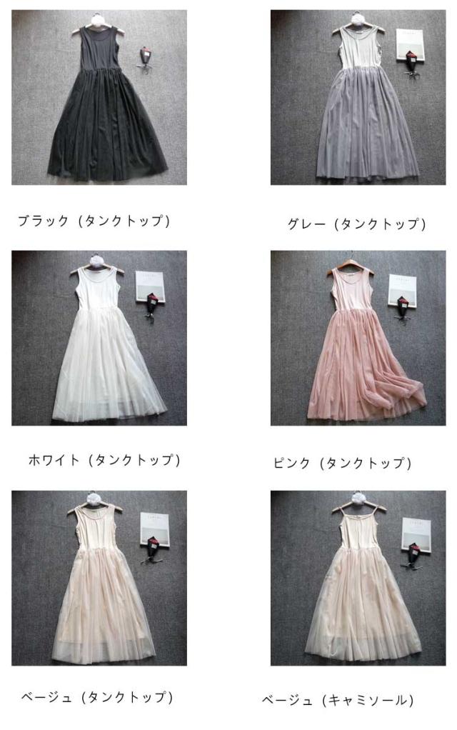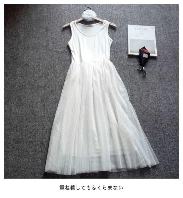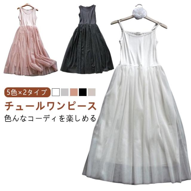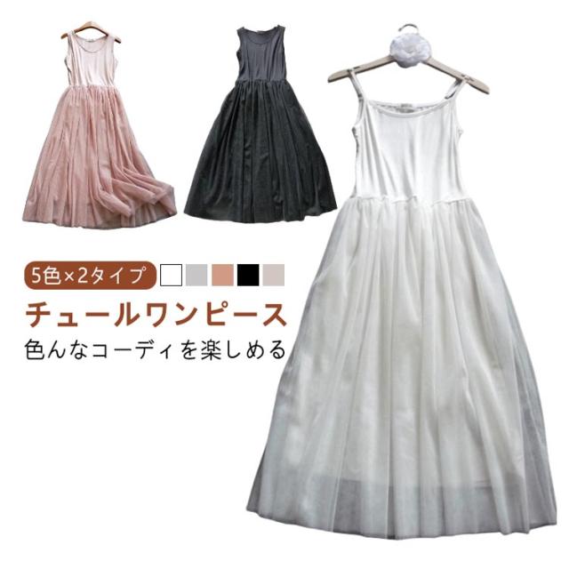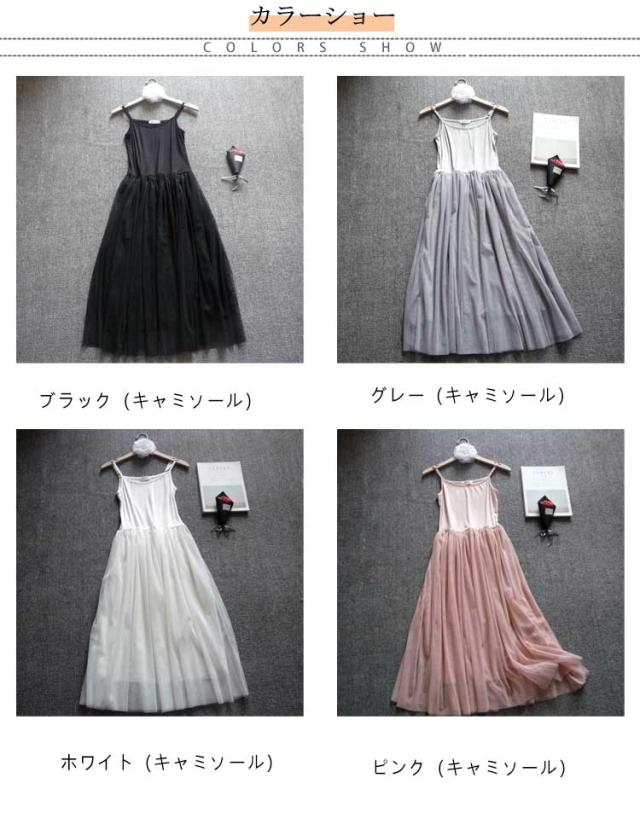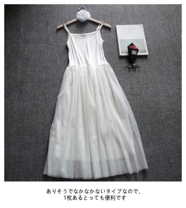 コーデ インナーワンピース チュールワンピース ロングワンピース キャミワンピース ペチコート レディース レディース チュール キャミソール タンクトップ ワンピース 2タイプ ペチワンピース レース 重ね着 柔らか ブラック 黒 ホワイト 白 ライトグレー ピンク