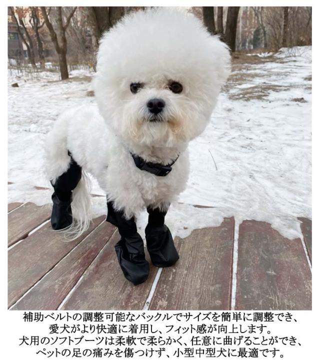 | 犬用レッグカバー。肉球をしっかり固定し、脱げにくい安定感。 防水生地とお手入れが簡単!防水犬用スノーブーツは日常使いだけでなく、雨、雪、氷の日にも適しています。使用後は毎回きれいに拭くだけです。 悪天候や地面の状況に直面しても、防水犬用ブーツはそれに簡単に対処でき、犬が滑って怪我をすることはありません。 補助ベルトの調整可能なバックルでサイズを簡単に調整でき、愛犬がより快適に着用し、フィット感が向上します。 犬用のソフトブーツは柔軟で柔らかく、任意に曲げることができ、ペットの足の痛みを傷つけず、小型中型犬に最適です。 足の形をした犬用ブーツと耐水性レギンスは、子犬の足と脚の毛皮を屋外のあらゆるエリマキから保護します。肉球の汚れを防ぎながら、石やガラスなどで愛犬の肉球を傷つけるのを防ぎます。 | |