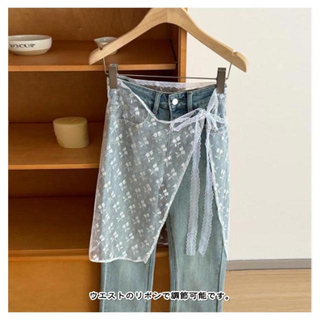 シアーレースレイヤードラップスカート 付け裾 レディース SNS話題スカート シースルー ボトムス 春夏 巻きスカート 巻き レイヤード 重ね着 巻くスカート ラップスカート 付け裾 レース 総レース 花柄 刺繍 ひざ丈 ズボンの上 ボトムス 送料無料