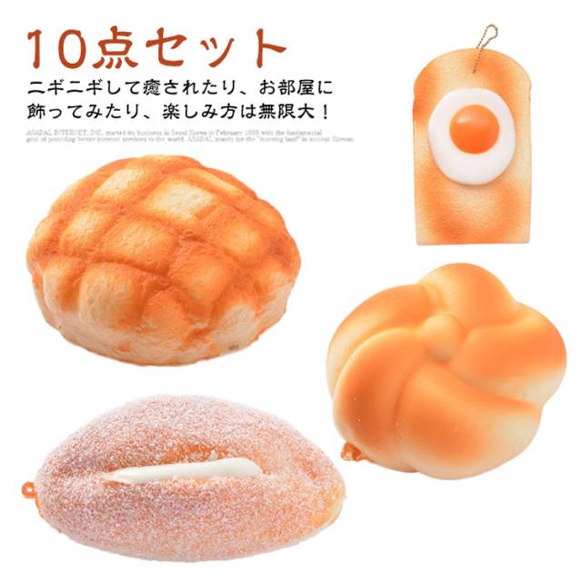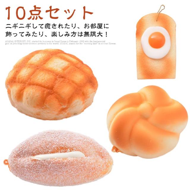 大きいパンセット 10個セット スクイーズ ぷにぷに ふわハニー 10個セット ジャンボスクイーズ 低反発 かわいい フード にぎにぎ バラエティー 香りつき キッズ 握る玩具 ままごと 感覚おもちゃ オモチャ ストレス解消 子供 プレゼント 癒し グッズ ふわふわ