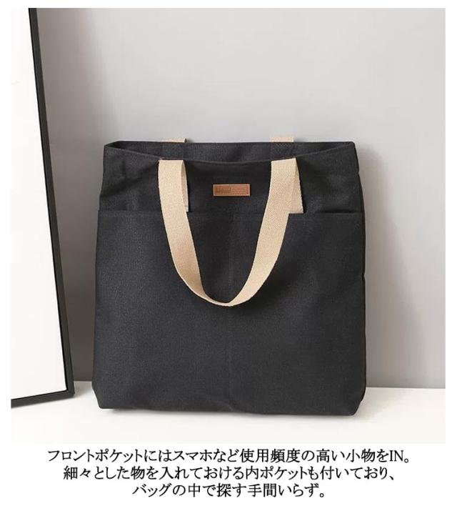 | ショッピングやお出かけ、通学に♪使い勝手ばっちりなトートバッグ。 ナチュラルな風合いのコットンキャンバス生地が、シンプルでデイリー使いしやすいデザイン。 メイン収納部はマチ幅が広く、お弁当箱やコスメポーチの収納もOK! メインルーム開口部は天ファスナー式。中身がこぼれ落ちにくく、プライバシーを確保。 A4サイズのファイルが余裕で収まる!マチや深さがしっかりあり、旅行やお出かけに必要な荷物がひとまとめ◎ フロントやサイドにもポケット収納がたくさん!整理整頓ができ実用性◎ コーディネートを選ばないカラー展開。なデザインで年齢性別問わず使いやすく、様々なシーンで活躍。 | |