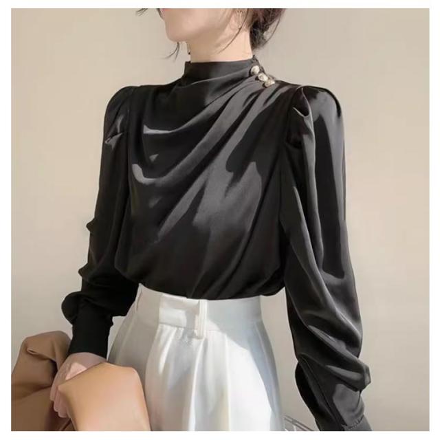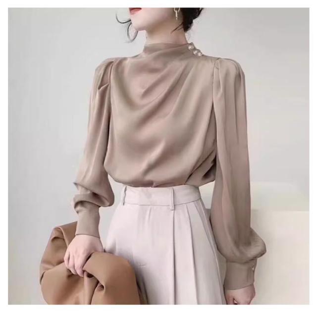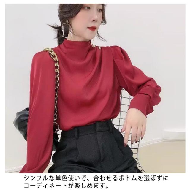 | 首元のタックとパールが目を惹くパールネックブラウス。 シンプルなコーディネートでもパールの存在感で上品かつ女性らしいスタイリングにキマるアイテム。 タックが入ったプチハイネックデザインでネックレスがいらない華やかな首周り。 コンシャスな袖は、今年らしいボリュームデザインで、気になる二の腕まわりをしっかりとカバー。 女性らしいやわらかなラインをつくりながらも、細見えを叶えてくれるメリットも期待できます。 シンプルな単色使いで、合わせるボトムを選ばずにコーディネートが楽しめます。 | |
