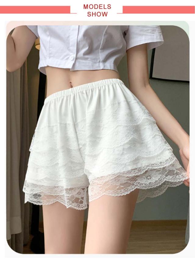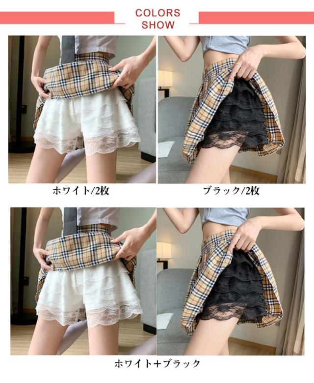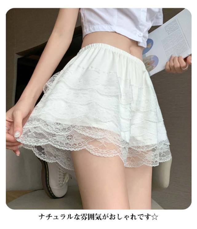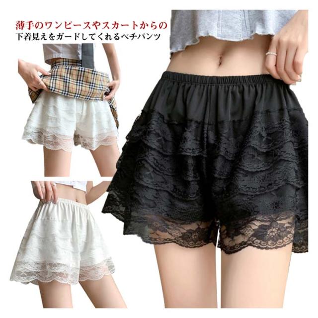レース ペチコート インナーパンツ ウエストゴム 透け防止 ルームウエア ミニ丈 フレアパンツ 透けない 下着 ペチパンツ ウエストゴム スカート下 レース 肌着 無地 かわいい おしゃれ インナーショーツ レディース