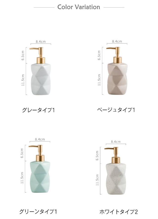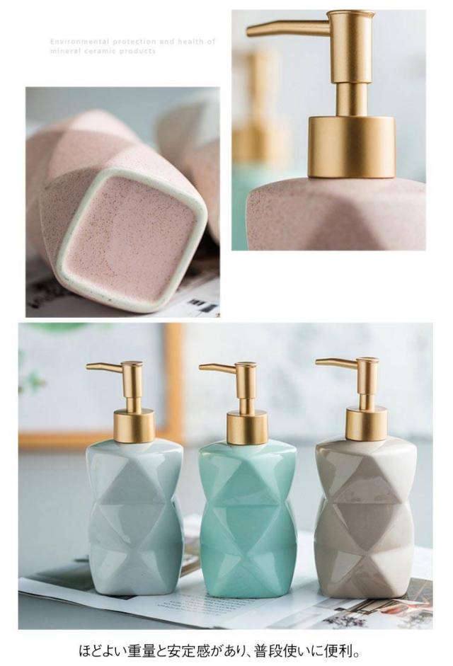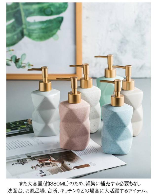 | 高品質のセラミックで作られるソープディスペンサー。 錆びず、カビも生えず、光も避け、ソープの使用期間を延ばします。 上質な質感や落ち着いた色合いと相まって、いつものサニタリーにリラックス感を演出。 押しやすく、軽く押すだけでフワフワの泡が出てきます。 ほどよい重量と安定感があり、普段使いに便利。 また大容量(約380ml)のため、頻繁に補充する必要もなし♪ 洗面台、お風呂場、台所、キッチンなどの場合に大活躍するアイテム。 | |