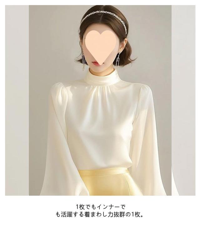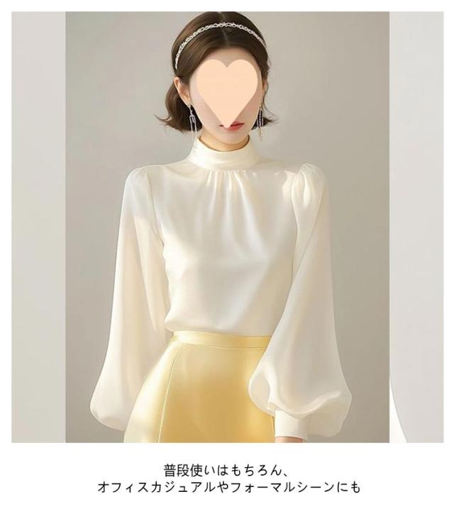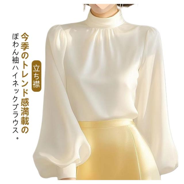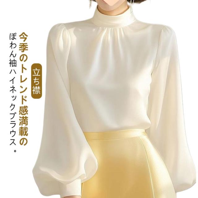 フォーマルブラウス 30代 ボリューム袖 長袖ブラウス ホワイト とろみ 白 立ち襟 シャツ 無地 ハイネックブラウス 40代 ぽわん袖 スタンドカラー トップス セレモニー ハイネックブラウス 入学式 卒業式 OL 通勤 春