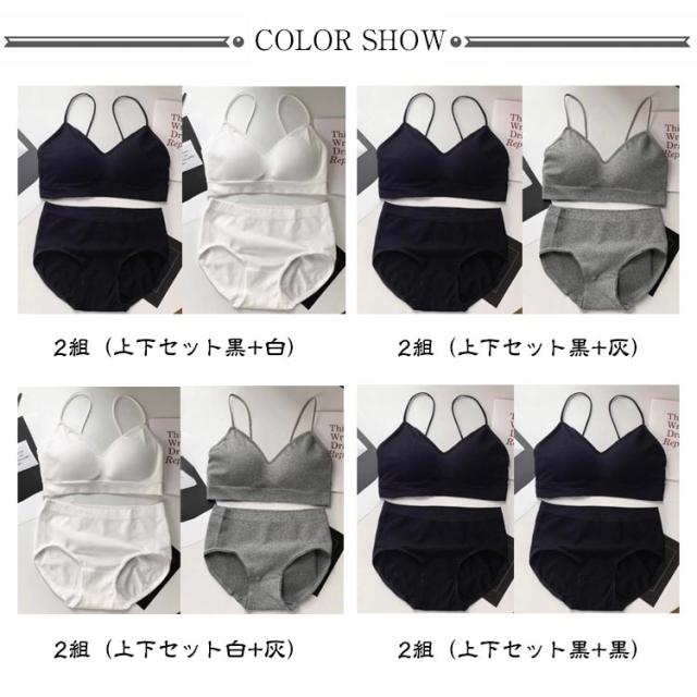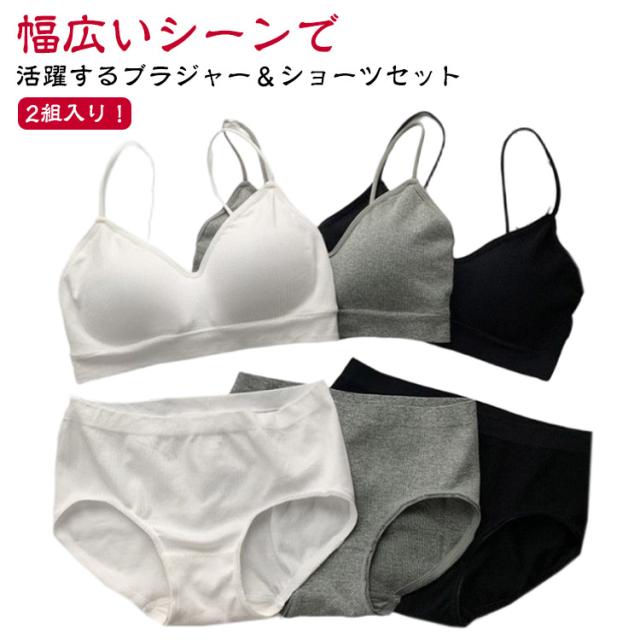 ブラジャー&ショーツセット フィットネス 女の子 パッド付き セットアップ キャミソール ノンワイヤーブラ キャミソール シンプル 下着 無地 ブラジャー&ショーツセット スポーツブラ 2組入り ナイトブラ ジュニアブラジャー ヨガ 運動