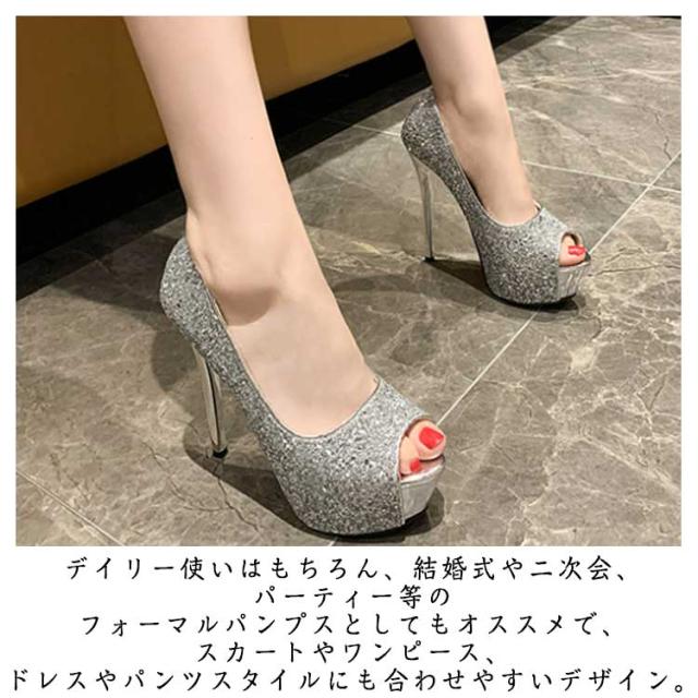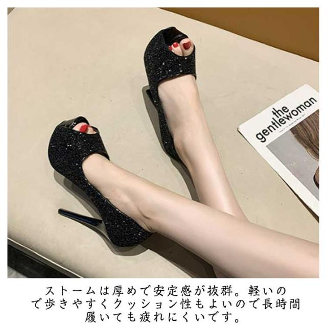 パンプス レティース 靴 ハイヒール ピンヒール キラキラ オープントゥ シューズ 結婚式 前厚 キャバパンプス パーティーパンプス 痛くない ストーム厚底 美脚 ブライダルシューズ キャバ嬢 発表会 演奏会 歩きやすい 通勤 パーティー シューズ サンダル おしゃれ