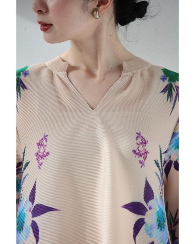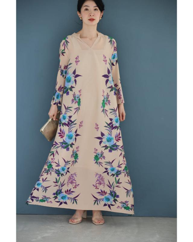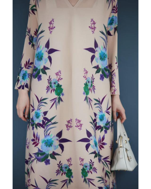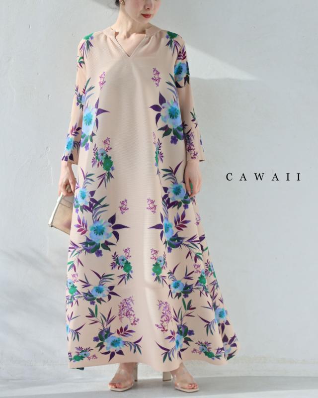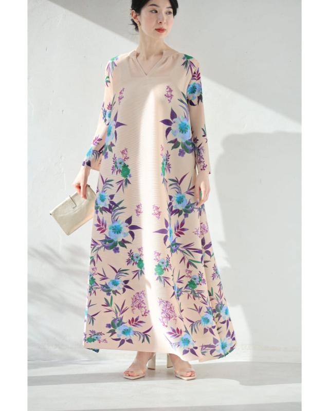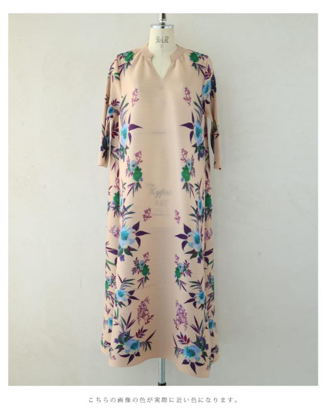w61143ps 新作 新着 再入荷 CAWAII FRENCHPAVE フレンチパヴェ エレガント ベーシック カジュアル 可愛い かわいい カワイイ おしゃれ オシャレ お洒落 個性 個性的 定番 ベーシック 大人かわいい 大人可愛い 上品 女性らしい デザイン スタンダード ナチュラル きれいめ キレイめ シンプル フェミニン レディース レディースファッション 大人 ママ ミセス 30代 40代 50代 60代 優美な花咲き誇る アコーディオンプリーツ ロング ワンピース 半端袖7分袖 八分袖 九分袖 ワンサイズ Sサイズ Mサイズ Lサイズ 2Lサイズ 3Lサイズ フリーサイズ フリー 小さめ 小さいサイズ 低身長 痩せ ほっそり 小柄 細身 標準サイズ 大きい 大きめ ビッグシルエット F サイズ自由 薄手 涼感性 涼しい ずずしい 春 夏 秋 春服 春物 夏 夏服 夏物 Vネック 春コーデ 夏コーデ 軽やか 体型カバー ゆったり ベージュ 柄 花 フラワー柄 ガーデン プリント 普段着 日常使い おでかけ 旅行 休日