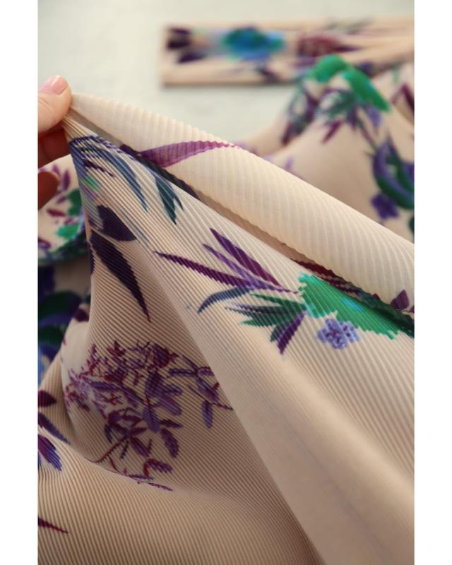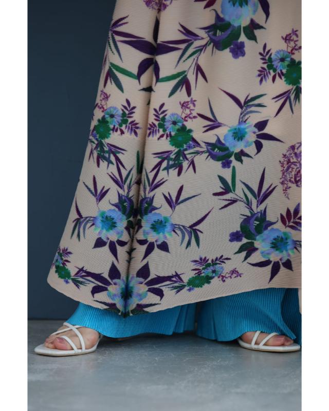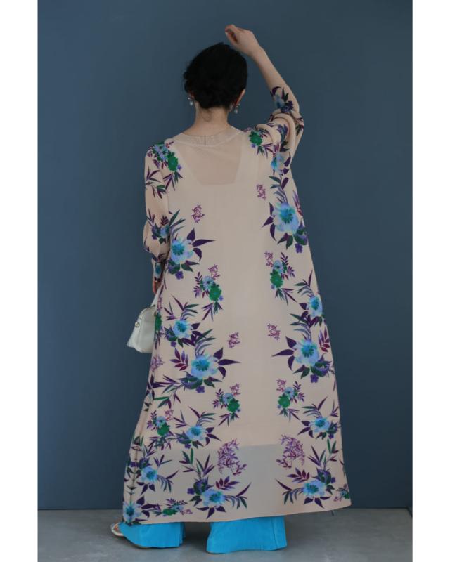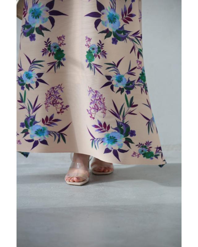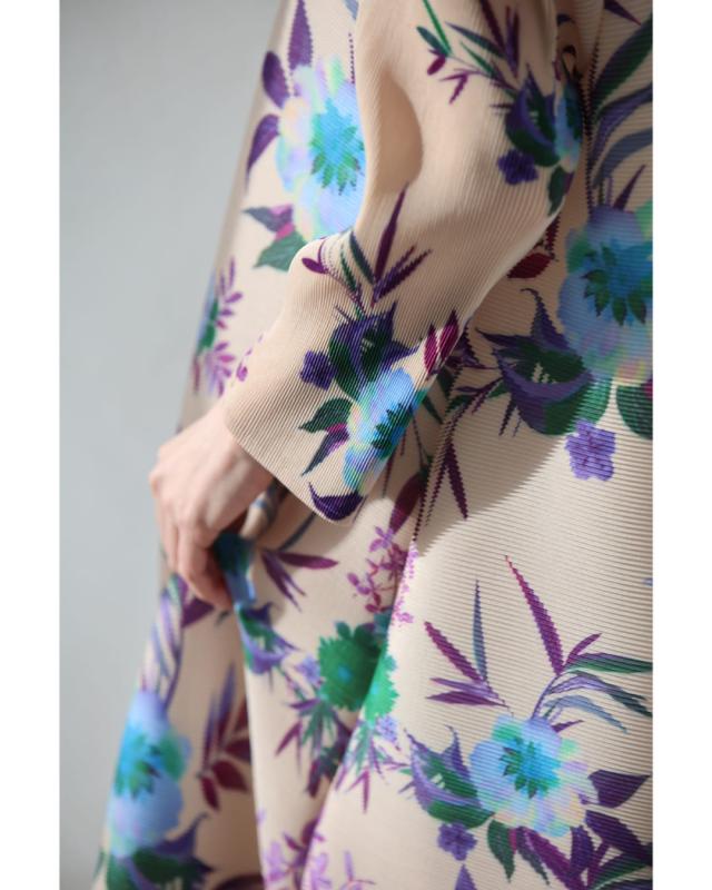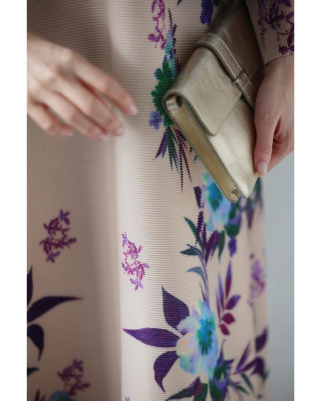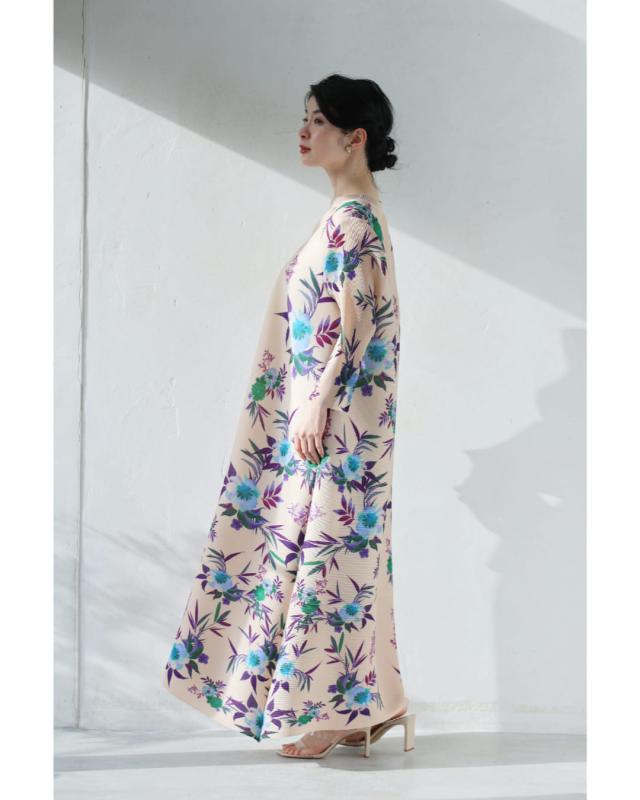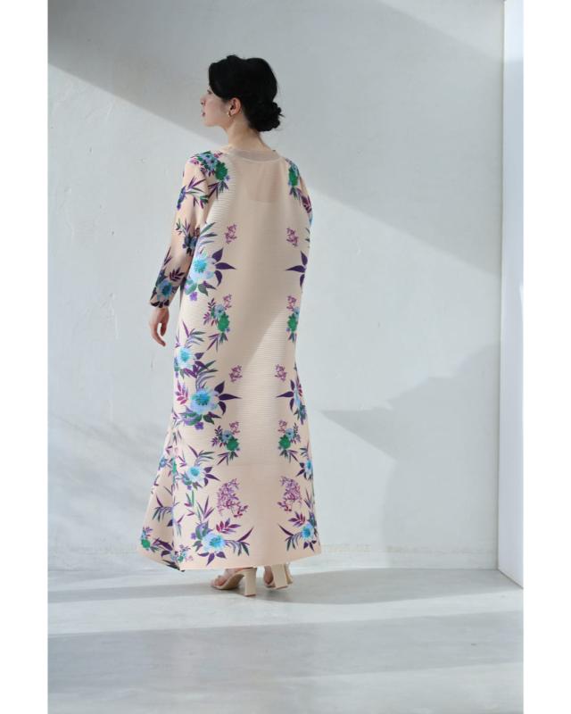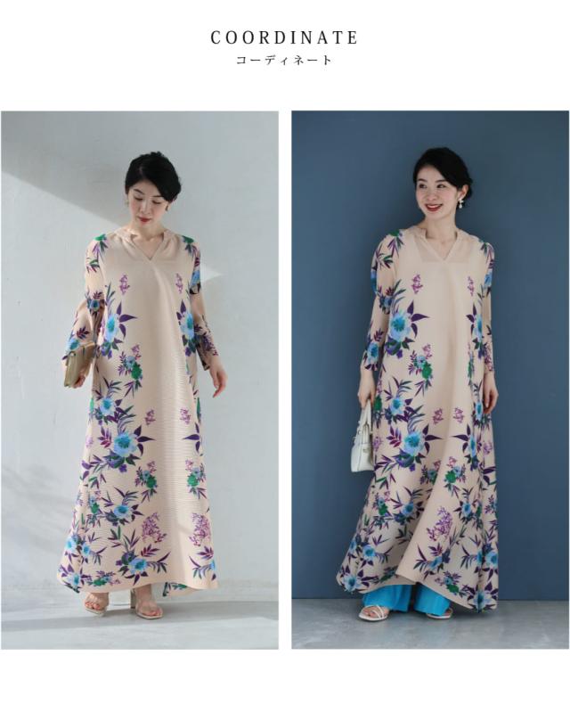 再入荷9月9日 優美な花咲き誇るアコーディオンプリーツロングワンピース cawaii w61143ps S~3L対応 薄手 涼感性 フラワー柄 ガーデン プリント 春夏コーデ 軽やか 体型カバー ゆったり ベージュ レディース ファッション 大人 ママ ミセス 30代 40代 50代