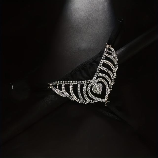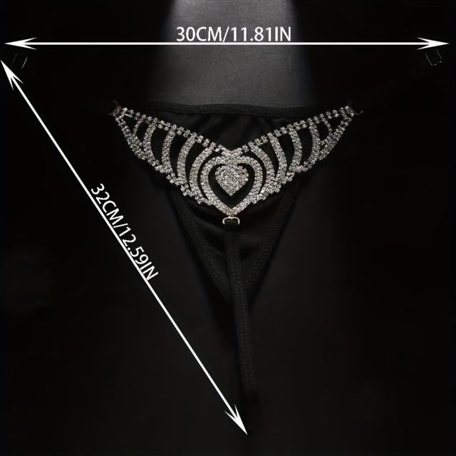 Heart Thong Attractive G String Women Bikini Jewelry Accessories Panty Body Chain Rave Rhinestone Panties Birthday