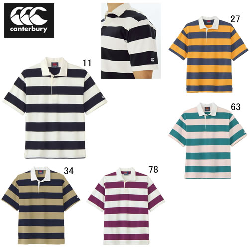 カンタベリー ラガーシャツ 半袖 襟付 メンズ canterbury 2.5インチ ストライプ ラグビージャージ ラグビー ボーダー 綿 タウンユース RA325134 NEW セール