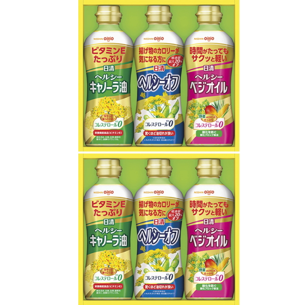 「日清ヘルシーベジオイル」、「日清ヘルシーキャノーラ油」、「日清ヘルシーオフ」が入った、