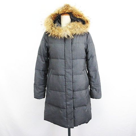 【中古】テチチ Te chichi ダウンコート 長袖 フード ジップアップ ハーフ丈 リアルファー M グレー ※EKM レディース