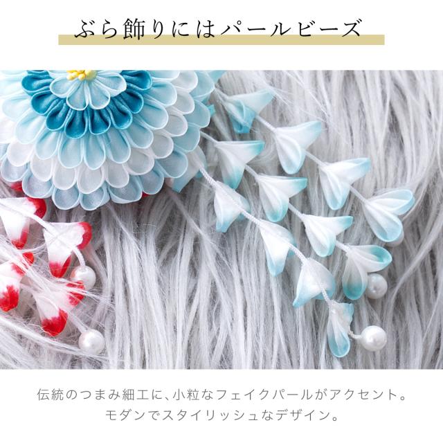 髪飾り 七五三 つまみ細工 ヘアアクセサリー 単品 赤 白 紫 ピンク 青 菊 花 ぶら飾り フェイクパール 着物用 和装用 髪留め 3才 7才 送料無料