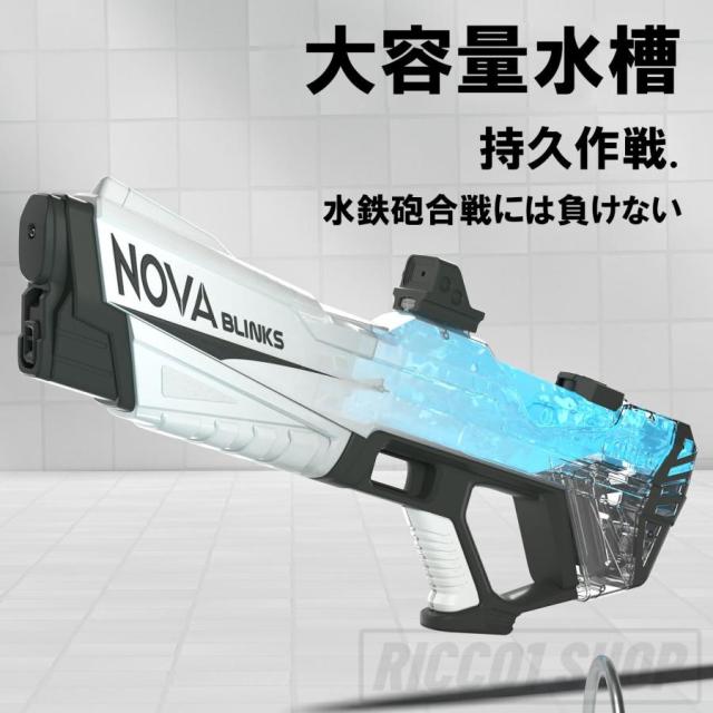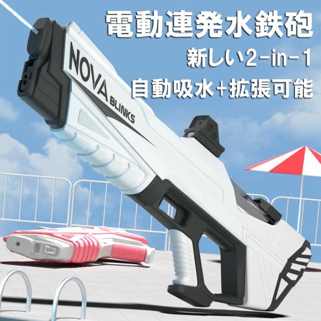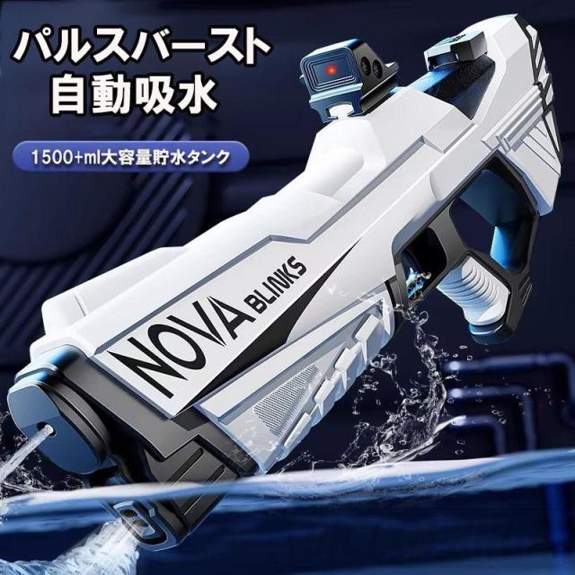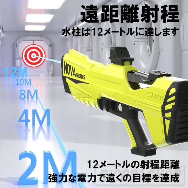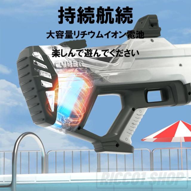 水鉄砲 電動 ウォーターガン 超強力飛距離 12m 水遊び 電動吸水 連射 USB充電式 保護メガネ 水鉄砲合戦 子供 大人 1500ml 大容量 水漏れ防止 夏休み 子供用