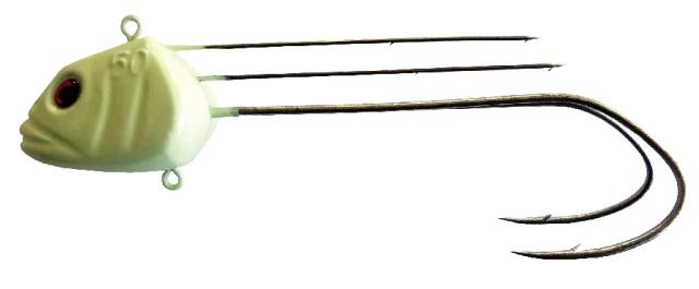 Fujiwara タチウオ 太刀魚 ジグヘッド テンヤ 仕掛け 2本のバーブドアームが、エサをがっちり固定。 解凍したエサの柔らかい腹でも問題なし。超発光のヘッドは集魚力抜群! ワイヤーリーダー、エサ巻きステン線入り! |
