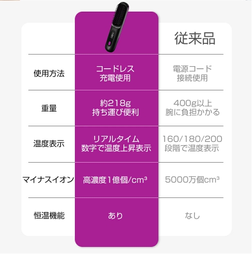 ■持ち運びに便利なコードレスタイプ、USB充電式でコンセント不要、学校や会社などでの急なヘアセットもOK。旅行や出張などに1つあると便利!バッグ収まるサイズ感だから常に持ち運びができる便利なアイテムです。