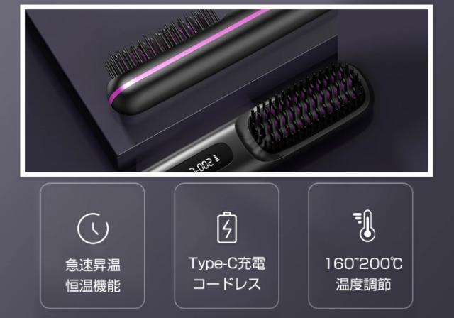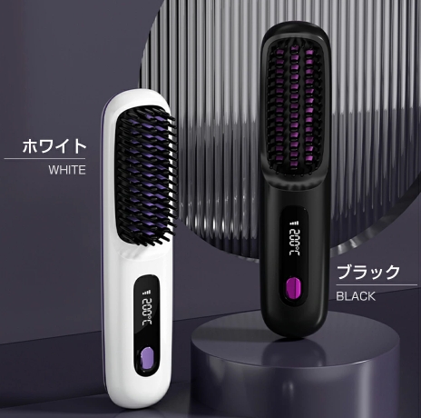 【20%超還元セレクト】ヘアアイロン ヒートブラシ くし型 ストレートアイロン ミニブラシ マイナスイオン コードレス カールアイロン 携帯 小型 軽量 美髪 縮毛矯正 ブラシアイロン MAX200℃ 急速加熱 充電式 男女兼用 温度表示 やけど防止 家庭 コンパクト