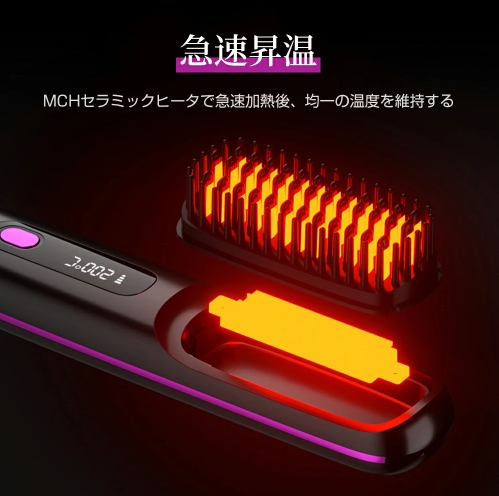 ヘアアイロン ヒートブラシ くし型 ストレートアイロン ミニブラシ マイナスイオン コードレス カールアイロン 携帯 小型 軽量 美髪 縮毛矯正 ブラシアイロン MAX200℃ 急速加熱 充電式 男女兼用 温度表示 やけど防止 家庭 コンパクト