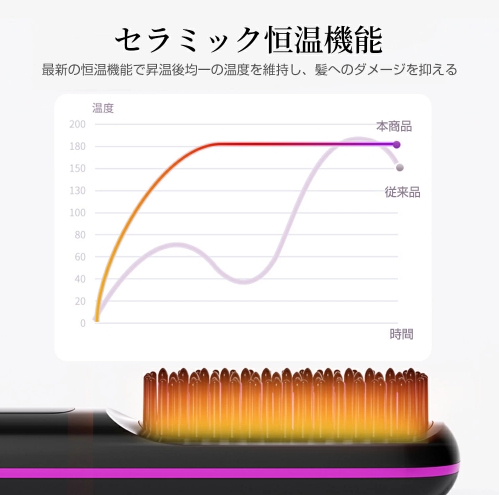 ■ヘアアイロンブラシは、ヘアアイロンとブラシを一体化に設計され、スタイリングにかかる時間を半減し、手間も半分に減らします。