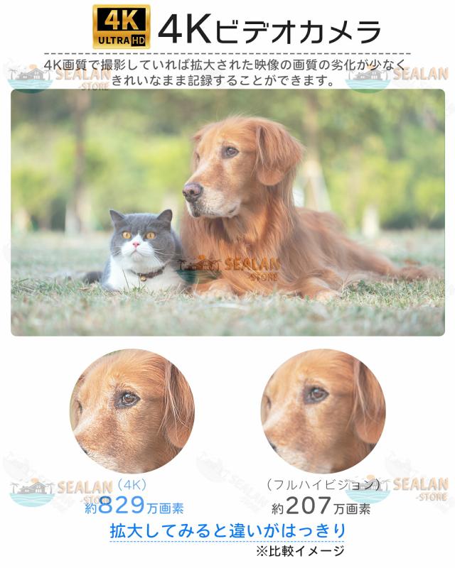 【4Kデジカメ】最大4K解像度が対応できて、カメラ内蔵のHDMIポートから直接に出力可能だから、撮った写真やビデオをお家のテレビにすぐ見えます。面倒なデータの転送は不要です。