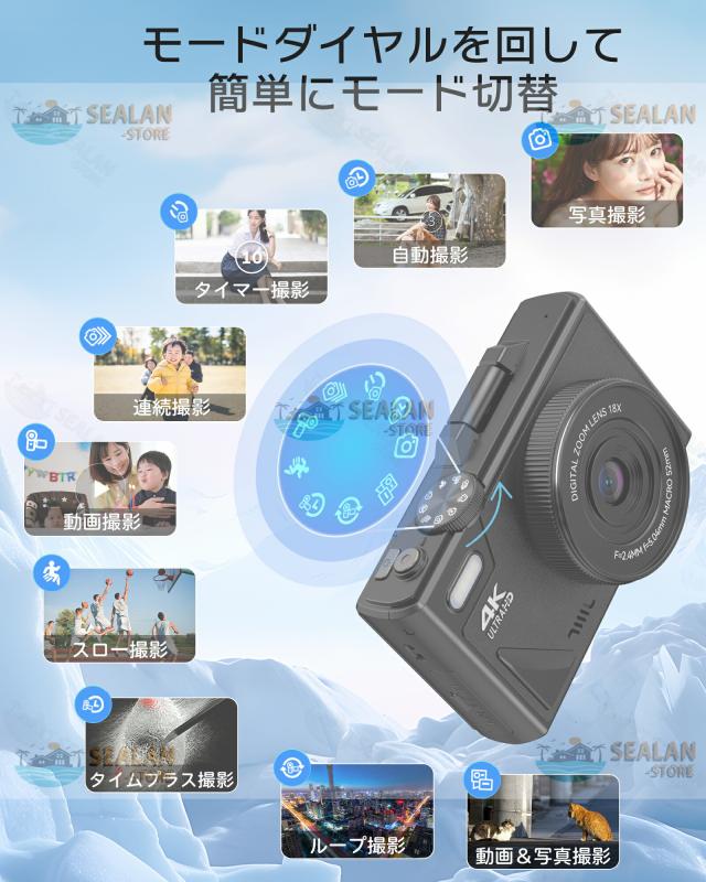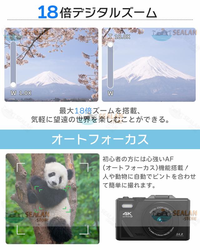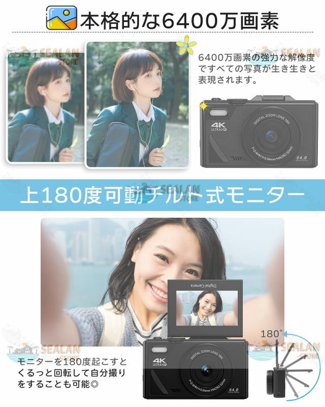 「2025最新作」「最大20%ポイント還元」「即納」ビデオカメラ 4K 6400万画素 小型 安い デジタルカメラ デジカメ 18倍ズーム オートフォーカス AF機能 カメラ 手ブレ補正 一眼レフカメラ 日本語説明書 専門家 初心者 誕生日 春旅