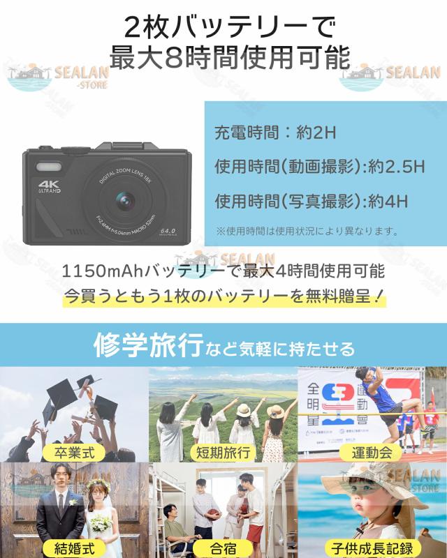 【多機能デジカメ】手振れ補正「写真」、顔認証、笑顔キャッチャー、連続撮影、美顔、多種類のフィルター、ウェブカメラ機能が搭載されて、豊かな選択で初心者でもカメラ世界の魅力を感じられます。子供の育ちにも、観察力や表現力が鍛えられ、美意識も向上します。