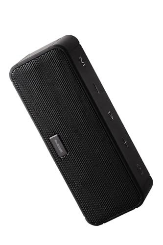 サッと持ち上げられるコンパクトサイズながら迫力あるサウンドを実現する、高音質ポータブルスピーカーです。 Bluetooth接続でワイヤレスに使用可能。室内のさまざまな場所はもちろん、屋外にも持ち出せます。 最大出力15W。Φ47mmフルレンジドライバーとパッシブラジエーターをそれぞれを2基搭載し、パワフルで重みのあるサウンドを実現しました。 低音域は力強く深みのある音を鳴らし、高音・中音域ではクリアな音源再現性を体験。通常のBluetoothスピーカーと比べて広い帯域をしっかりと再現するため、あらゆる音楽のディテールを隅々まで楽しめます。 砂・ホコリなどを侵入させず、一時的に水中に沈めても機器が影響を受けない、防水防塵規格IP67対応。浴室でのシャワー中、キッチン、海や山など多彩なアウトドアシーンでも安心して使えます。