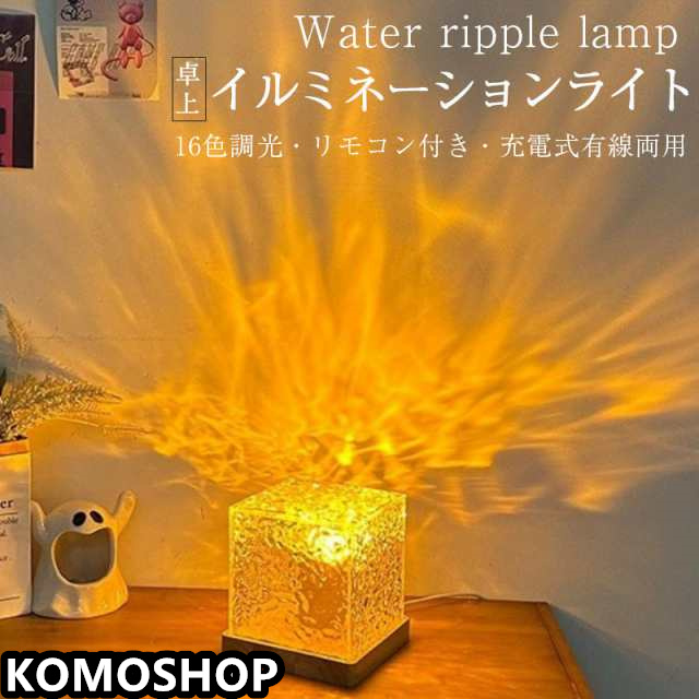 卓上イルミネーションライト オーロラランプ ナイトライト おしゃれ ベッドサイド リモコン付き 16色 間接照明 水面 ライト ギフト 寝室 リビング