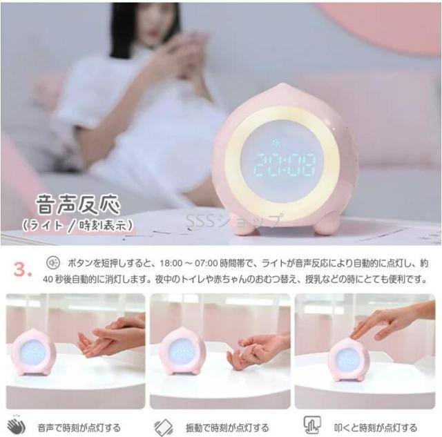 目覚まし時計 ナイトライト 置き時計 モモ 桃 デジタル おしゃれ クロック アンティーク デジタル ナイトライト