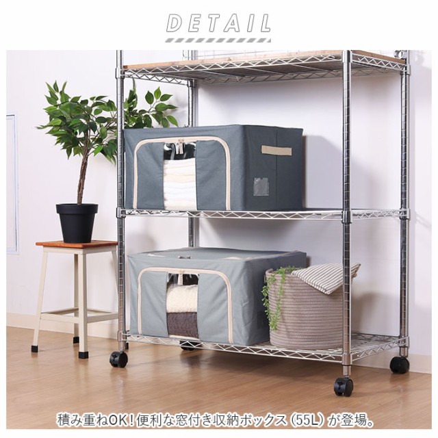 ?大容量55Lタイプの収納ボックス。耐荷重は約12kg。